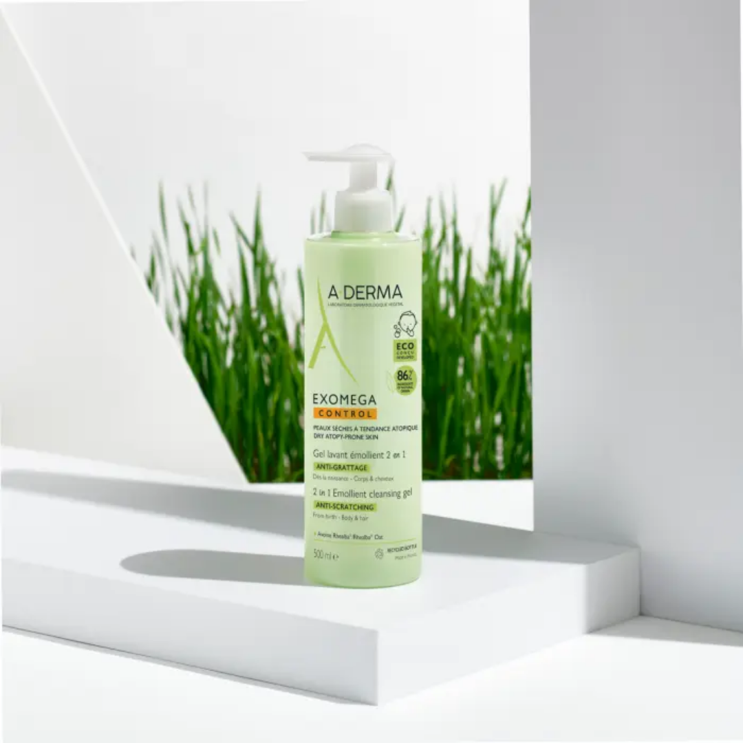 Xheli Pastrues Emolient EXOMEGA CONTROL pastron (fytyrë, trup, flokë), qetëson dhe mbron lëkurën e thatë të prirur ndaj dermatitit atopik që nga lindja. Falë formulës së saj të biodegradueshme që përmban 86% përbërës me origjinë natyrale, zbut lëkurën e fëmijëve dhe e bën më të lehtë higjenën dhe përkujdesjen.