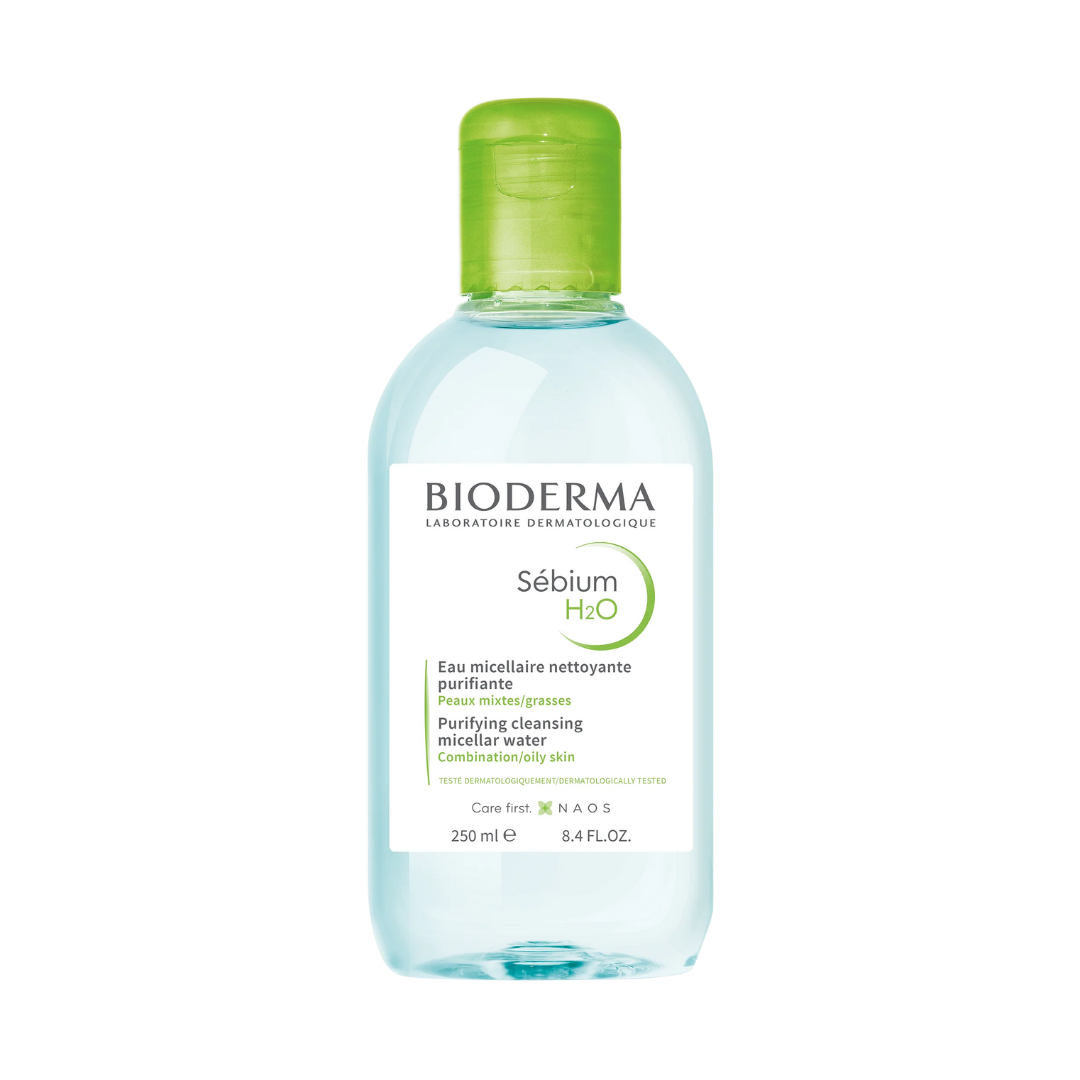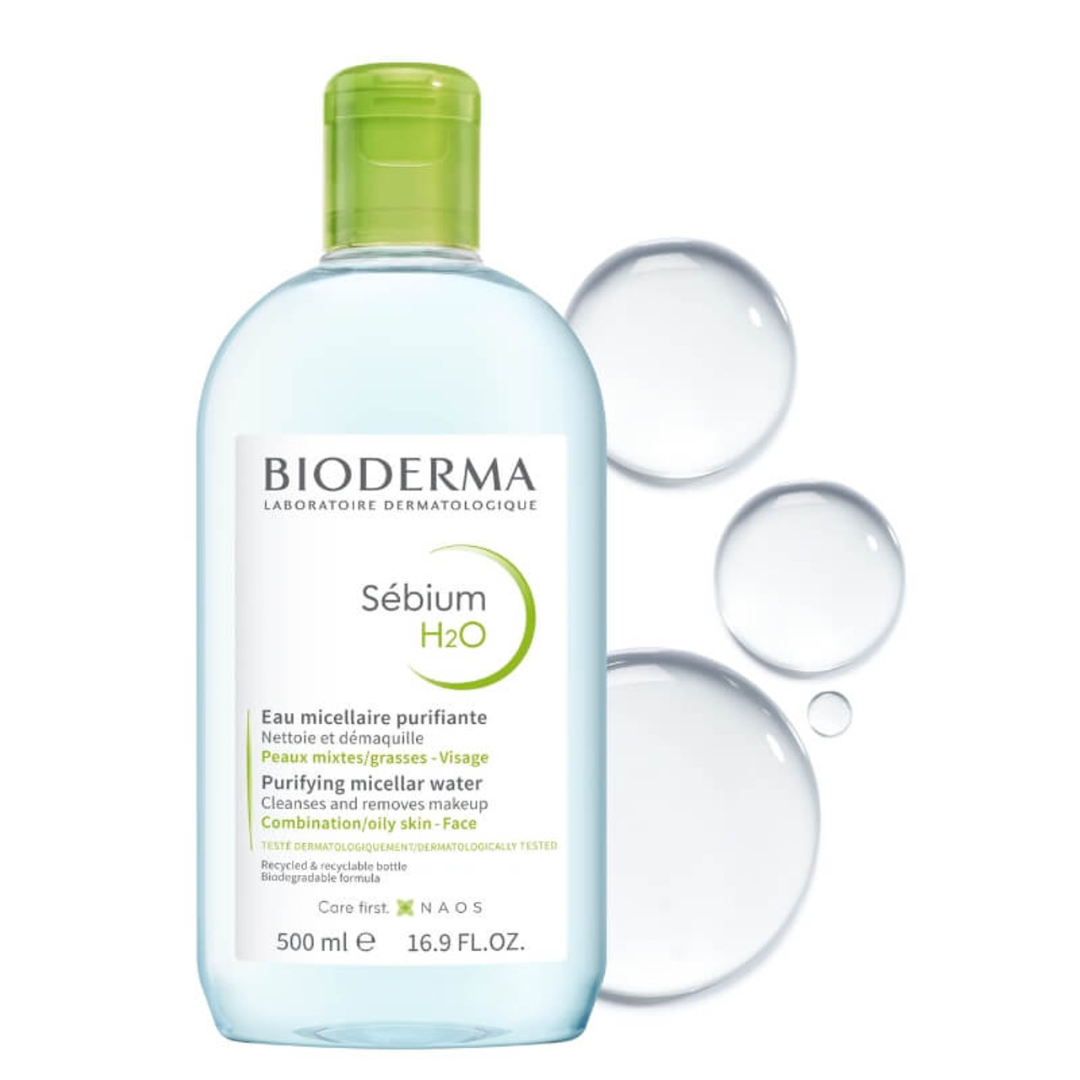 Uji micelar dermatologjik i cili pastron, heq grimin, matifikon dhe pastron pa e tharë lëkurën.