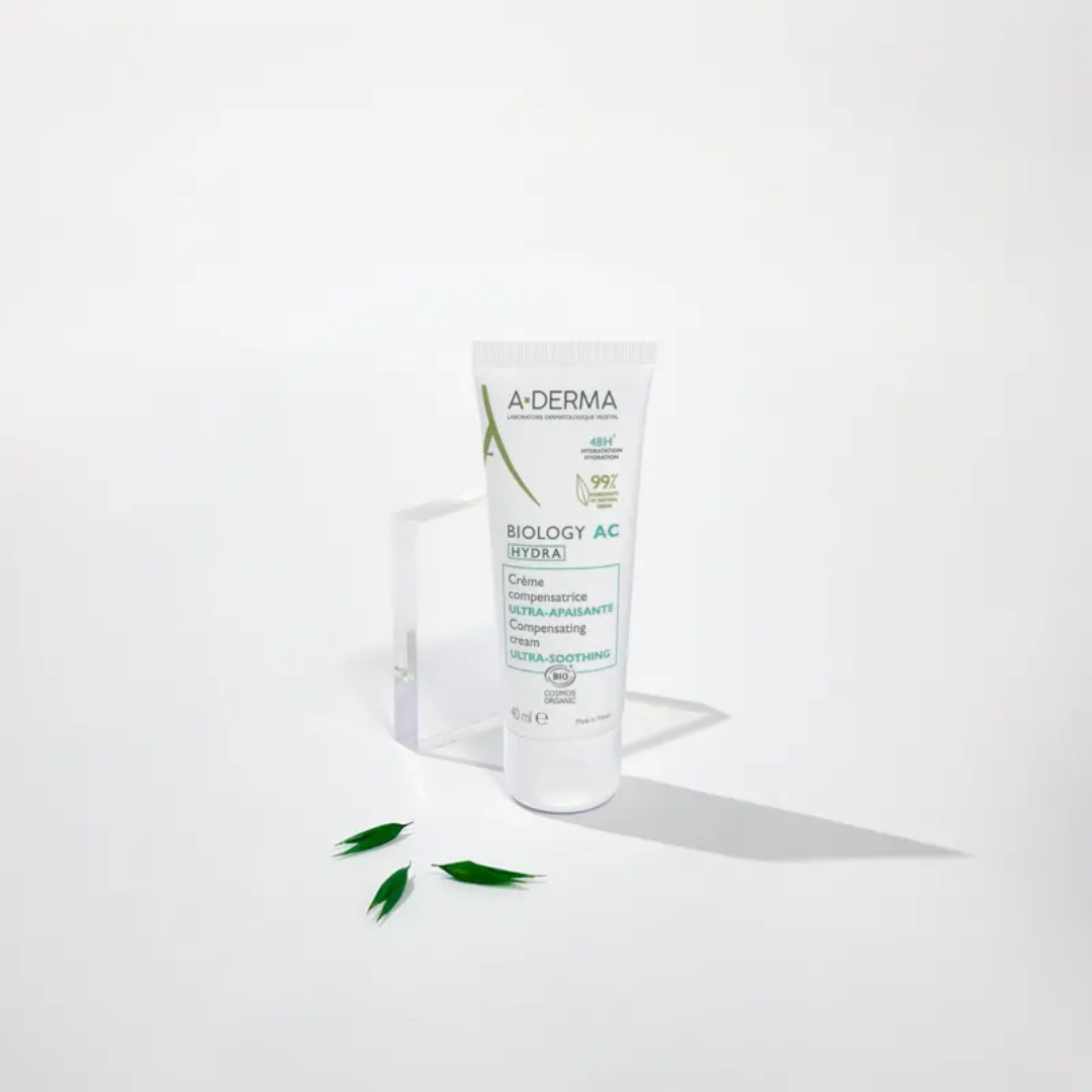 Kjo përkujdesje hidratuese dermatologjike dhe e çertifikuar organike, redukton efektet tharëse dhe irrituese të trajtimeve për lëkurën e yndyrshmë dhe me tendencë akneike.