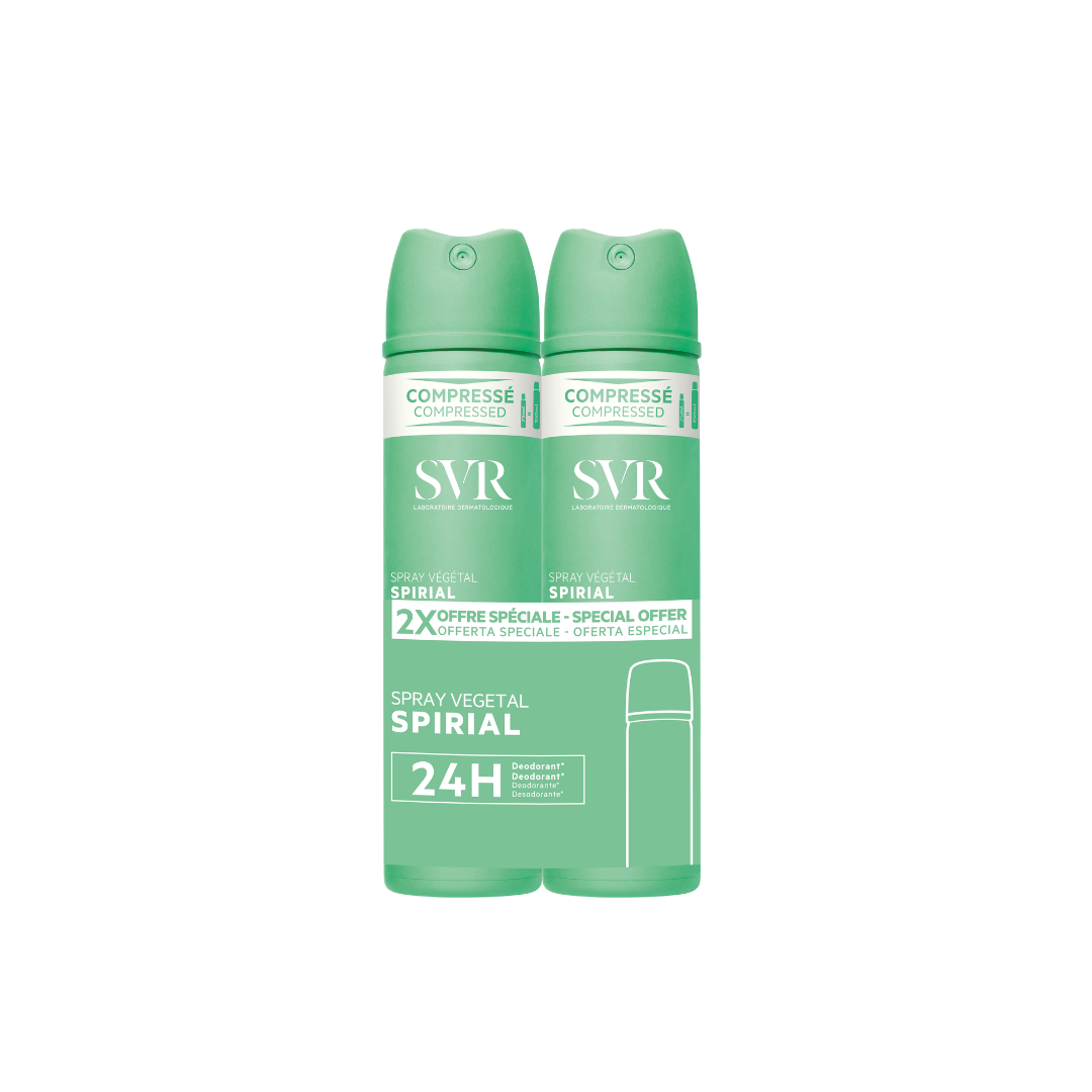 Kit duo deodorant spraj me përbërës vegjetal rregullues të djersitjes, parandalues dhe reduktues të djersitjes dhe aromës së pakëndshme të trupit, për lëkura të ndjeshme