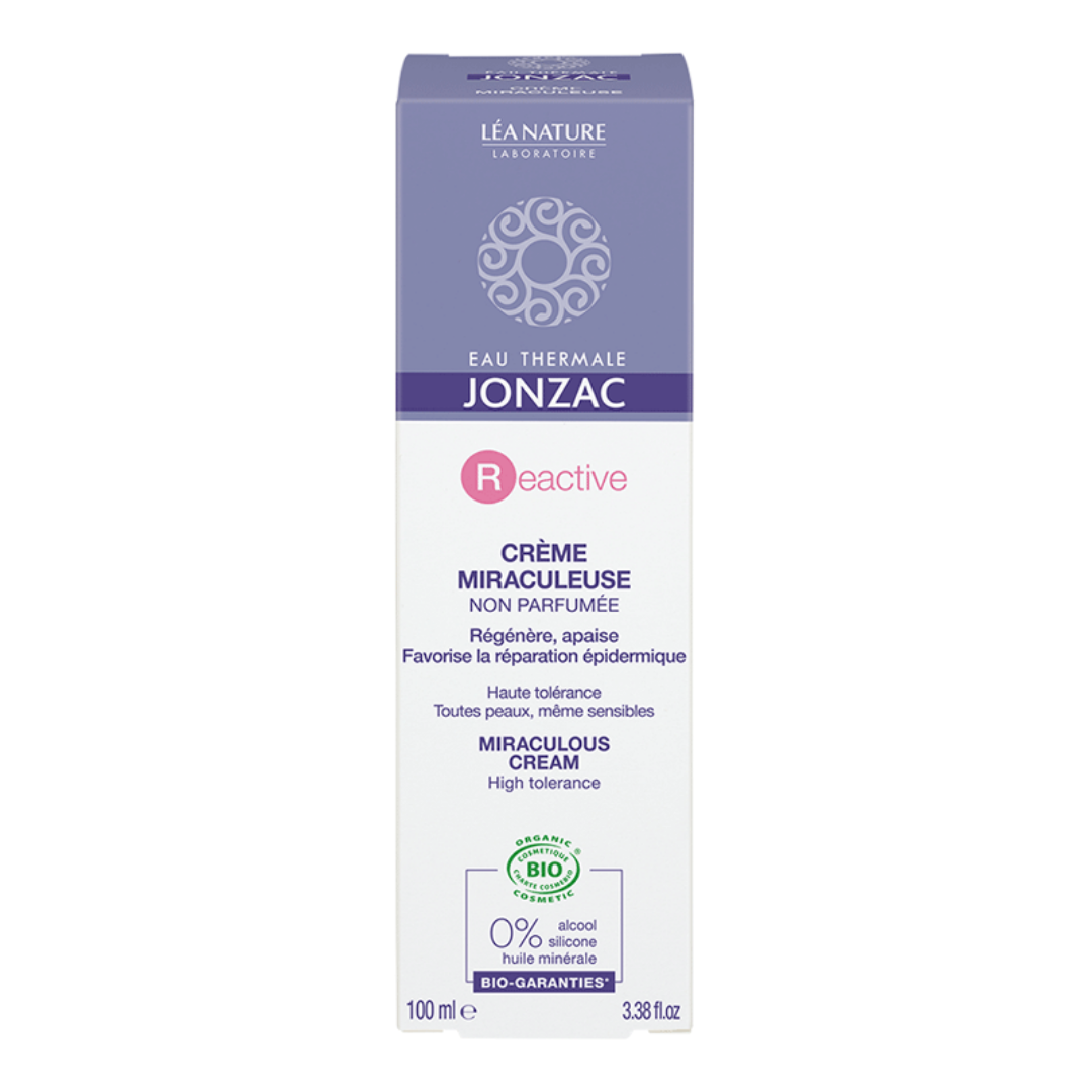 I pasur me ujë termal qetësues dhe rigjenerues Jonzac dhe acid hialuronik restaurues, kremi Miraculous Reactive ndihmon në forcimin e vetive mbrojtëse të lëkurës.