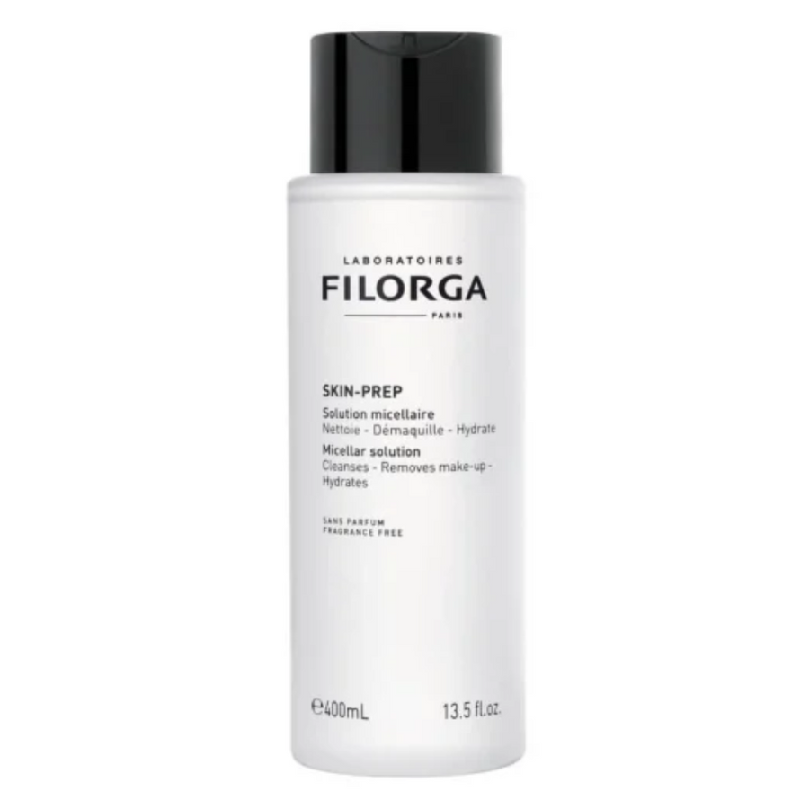 FILORGA SKIN-PREP MICELLAR SOLUTION është një ujë micellar 3-në-1 që pastron,largon grimin dhe hidraton. E përshtatshme për të gjitha llojet e lëkurës dhe e sigurt për të hequr grimin e syve. E pasur me përbërës aktivë hidratues dhe qetësues [trehalose + rhamnose] për një lëkurë dukshëm më të re, ajo lë fytyrën plotësisht të pastruar dhe gati për të përdorur përkujdesjet e tjera ditore të fytyrës.