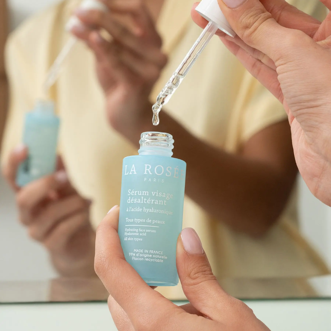 Serum hidratues që shuan etjen e lëkurës së fytyrës ku kombinohet acidi hialuronik me peshë molekulare të lartë dhe të ulët për një veprim të dyfishtë: lëmon sipërfaqen e lëkurës dhe e hidraton atë në thellësi.