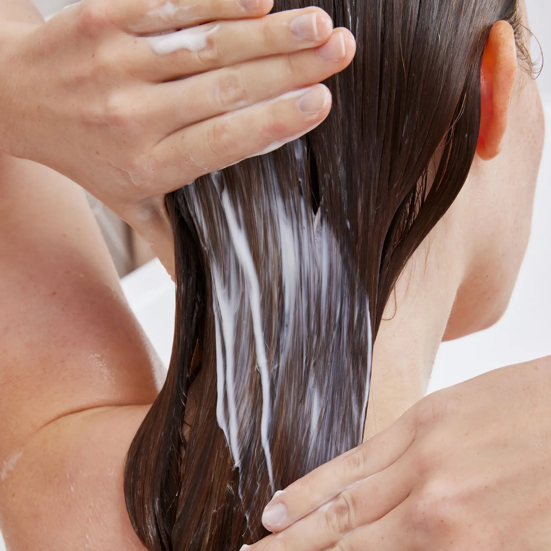 Aqua (water), Cetearyl alcohol, Glycerin, Distearoylethyl dimonium chloride, Simmondsia chinensis (jojoba) seed oil, Parfum (fragrance), Caesalpinia spinosa gum, Hibiscus sabdariffa flower extract, Hydrolyzed wheat protein, Hydrolyzed corn protein, Hydrolyzed soy protein, Prunus amygdalus dulcis (sweet almond) fruit extract, Prunus amygdalus dulcis (sweet almond) oil, Sodium benzoate, Citric acid, Levulinic acid, Sodium levulinate, Zea mays (corn) starch, Gluconolactone, Potassium sorbate, Polyglyceryl-4 caprate, Tocopherol, Xanthan gum, Sodium hydroxide, Calcium gluconate.