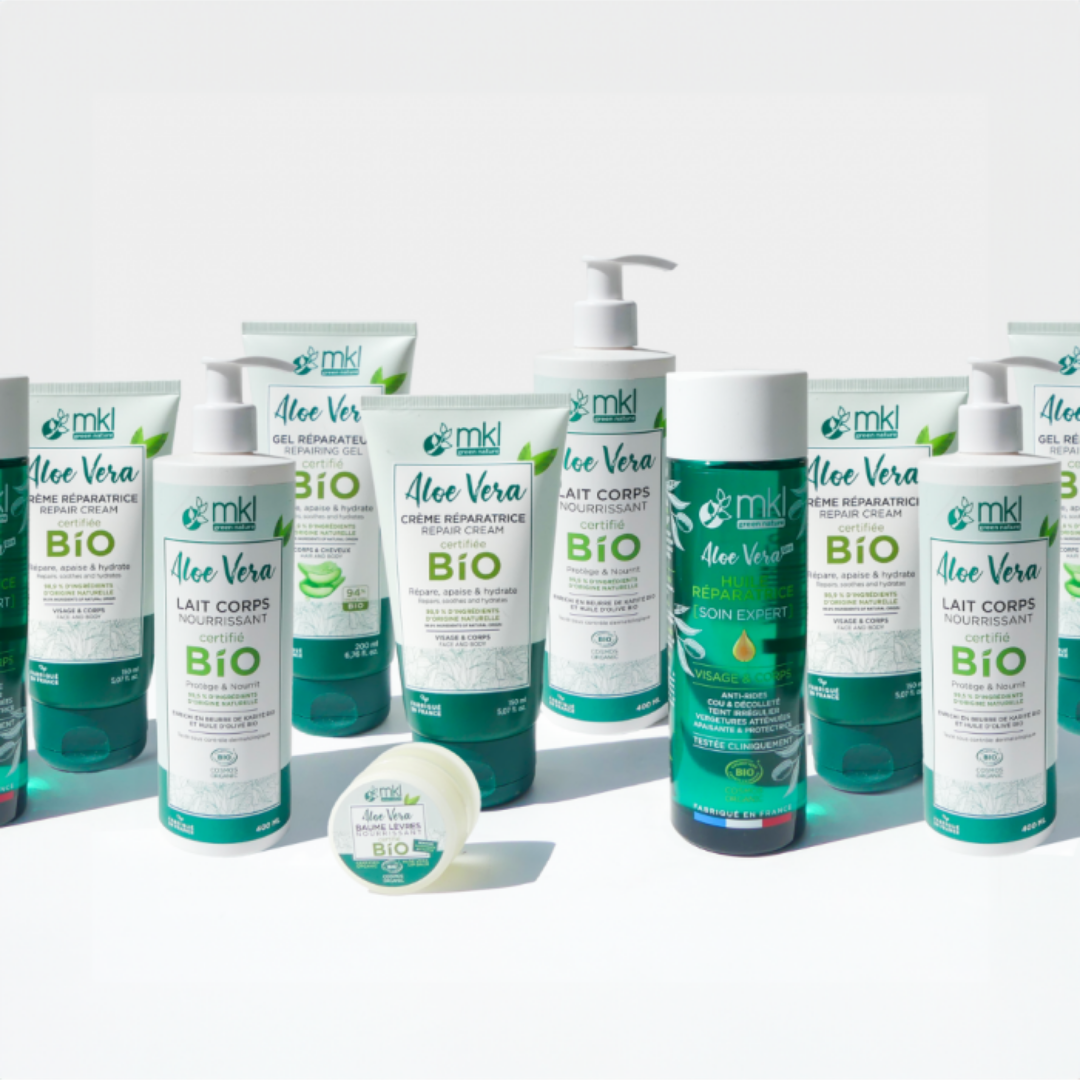 -Aloe vera BIO e njohur për pasurinë e saj me amino-acide, minerale dhe vitamina të cilat kanë veti të pabesueshme për lëkurën: hidratuese, qetësuese, antioksiduese dhe rigjeneruese.
