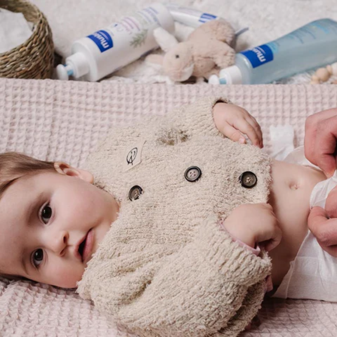 Lëndët ushqyese qetësuese të lëkurës së Mustela® Liniment krijojnë një barrierë hidratuese që siguron hidratim afatgjatë për zonën e pelenave të foshnjës suaj.