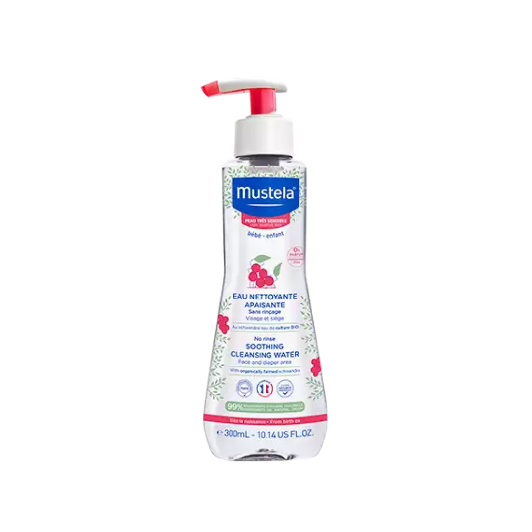 Ujë pastrues pa shpëlarje, qetësues për lëkurën shumë të ndjeshme të trupit, fytyrës dhe zonës gluteale, që nga dita e parë e lindjes, 300 ml