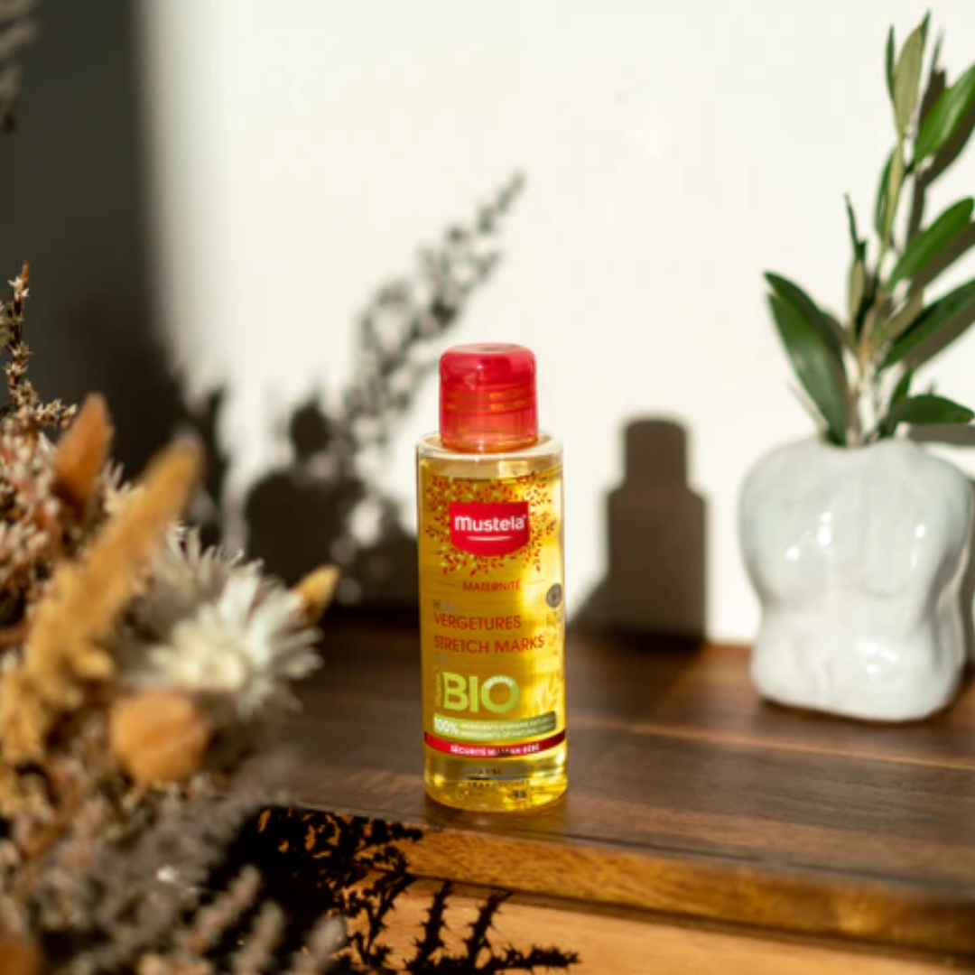 Vaj parandalues i shfaqjes së strijave gjatë dhe pas shtatzënisë,me veprim 3 në 1 : hidraton për kohë të gjatë, përmirëson elasticitetin e lëkurës, qetëson ndjesinë e diskomforitt.