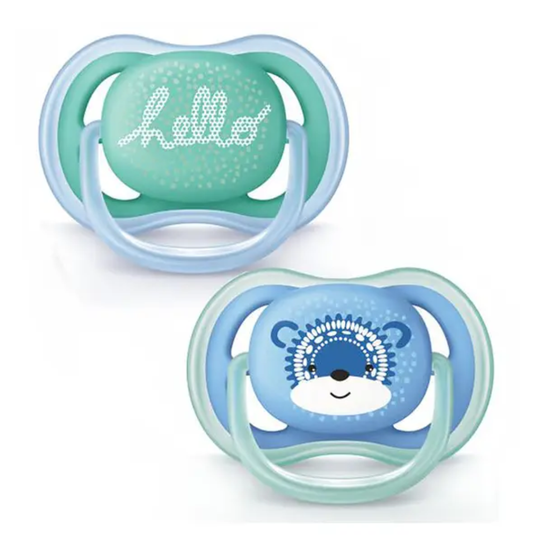 Seti i beberonëve qetësues për bebe 6-18 muaj Ultra air është projektuar për të lejuar ajrin të qarkullojë lirshëm, duke lejuar që lëkura e ndjeshme e foshnjës tuaj të marrë frymë. Falë projektimit të tij të frymëmarrjes dhe qarkullimit të lirë të ajrit, lëkura e ndjeshme e foshnjës suaj qëndron më e thatë gjatë përdorimit.