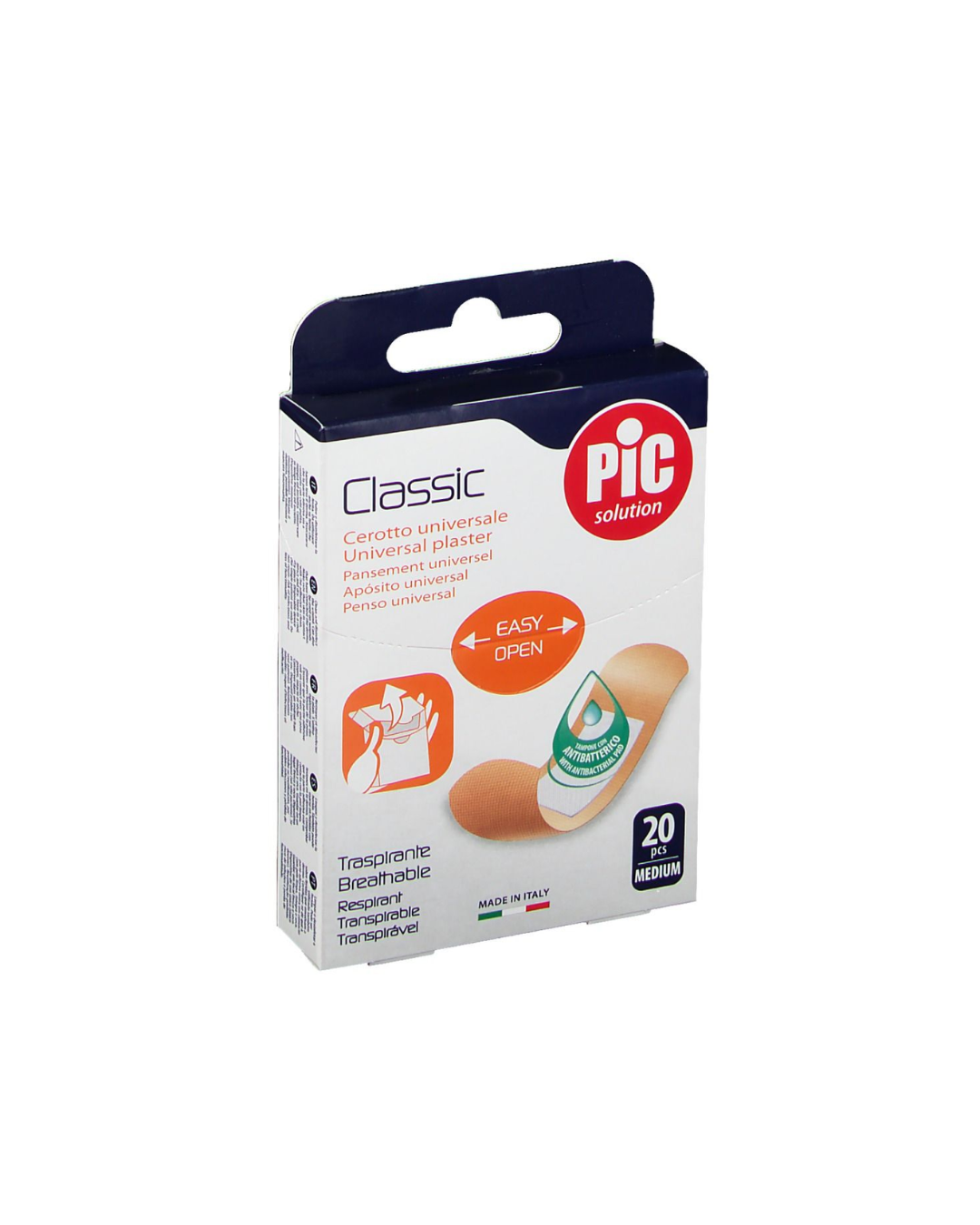Ankerplast me madhësi mesatare,I fortë por që lejon ajrosjen e palgës, i përshtatshëm për të gjithë, me një pambuk antibakterial klorheksidine. Paketim me 20 copë
