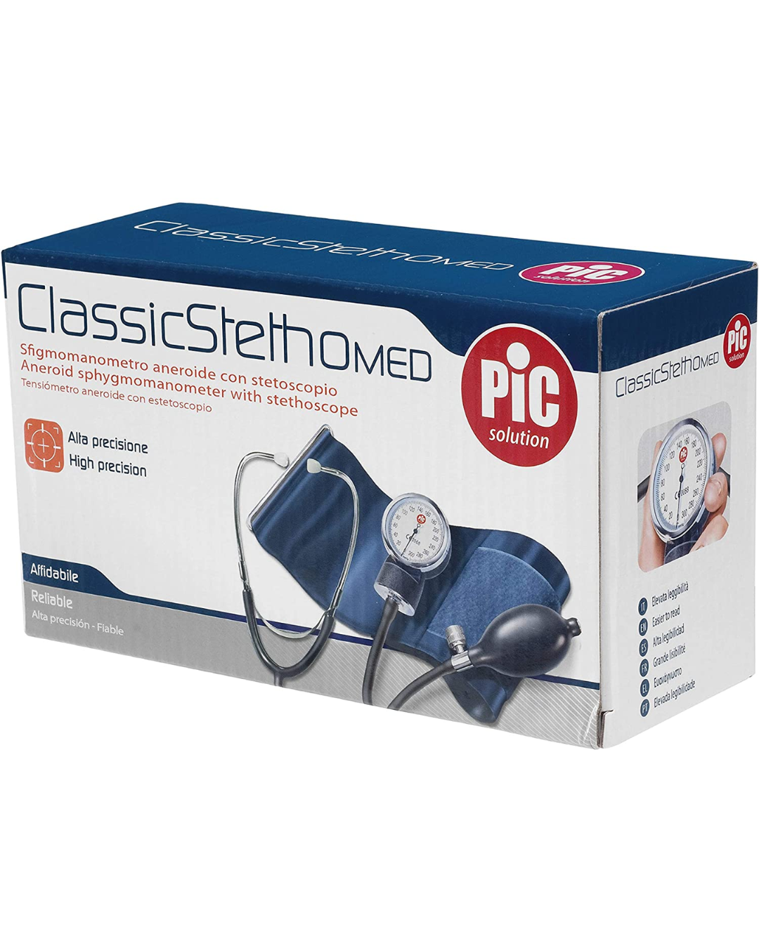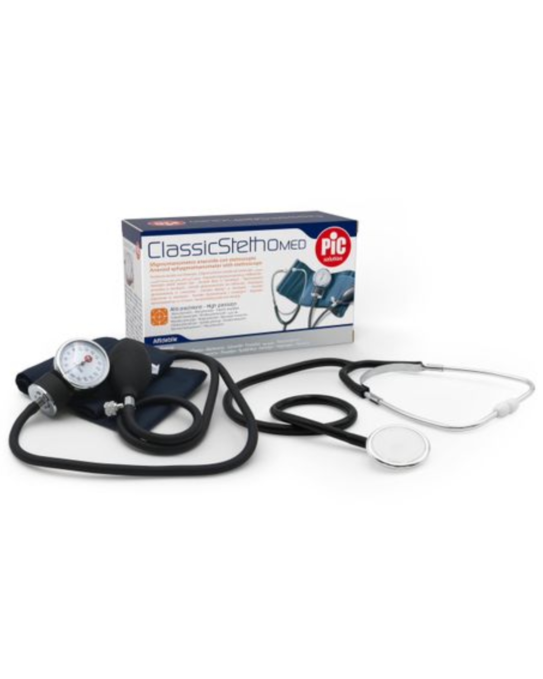 Ky aparat për matjen e presionit të gjakut nga gama Pic Solution përbëhet nga një matës manual i tensionit të gjakut dhe një stetoskop. Ai ju ofron paketën e plotë për monitorimin e presionit të gjakut, duke bashkuar matësin manual të tensionit të gjakut Classic Med dhe stetoskopin praktik Pic.