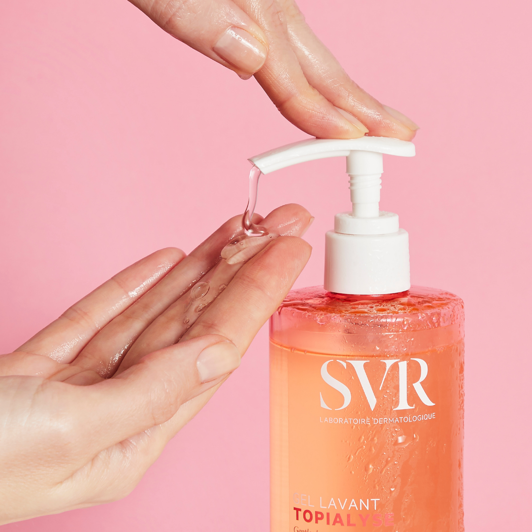 Falë kompleksit të tij pastrues ultra të butë pa sapun, TOPIALYSE rikthen dhe mbron barrierën e lëkurës.